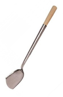 Spatule en acier inoxydable de qualité avec manche en bois, suffisamment longue pour éviter les dangers et suffisamment courte pour une bonne maîtrise.