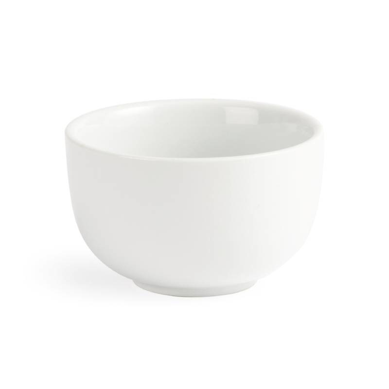 Sucrier 200ml en porcelaine blanche d'excellent rapport qualité / prix pour les besoins quotidiens de la restauration, entièrement vitrifié pour résister aux éclats. Empilable, il est facile à transporter et ranger.
