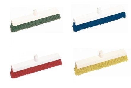 Tête de balai hygiénique à poils durs disponible en quatre couleurs différentes afin d'éviter toute contamination croisée.