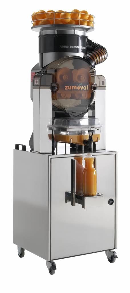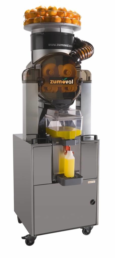 Les presses agrumes professionnels sont totalement automatiques: Il n’est pas nécessaire de couper les oranges en deux, mais seulement les déposer dans le bac de fruits et la machine fera tout pour vous à une grande vitesse. La machine zumoval est une machine haut de gamme, qui sera parfaitement adaptée pour les professionnels. Elle produit 45 oranges/minute. Ce presse orange zumoval est automatique et indépendant, pas besoin de mettre manuellement les oranges Spécifications: